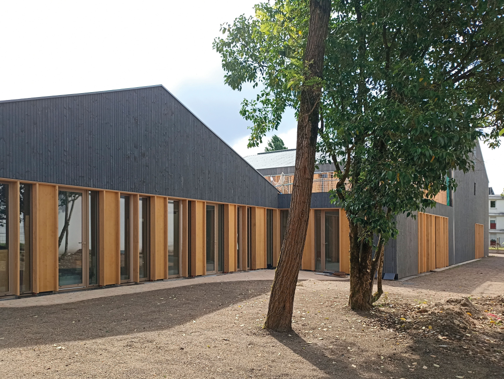 La nouvelle « école village » de Bègles se situe sur le site de l’ancienne école Jacques-Prévert, vieillissante et non adaptée à la croissance démographique de la ville. Pour autant, les architectes ont choisi de ne pas faire table rase du passé : leur projet s’inscrit dans une démarche de préservation et de valorisation du patrimoine bâti et paysager. Une partie de l’ancienne école a ainsi été conservée, notamment sa charpente octogonale, transformée en bibliothèque. « Cette structure de qualité, nous avons voulu la transformer en un espace à part, à la fois ludique et poétique », explique Vanessa Larrère, architecte associée chez OECO. « Elle accueillera la bibliothèque. C’est une “folie architecturale” au milieu de la cour, un lieu où la lecture occupera une place centrale dans la vie de l’école. »