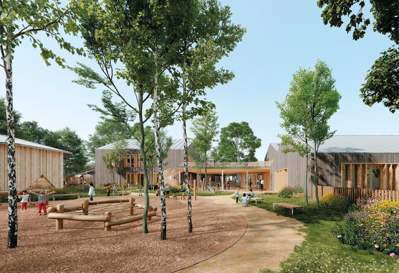Début 2026, les élèves et personnels enseignants de Bègles (33) pousseront les portes d’une «école village». Une fois la porte d’entrée franchie, ils découvriront les pavillons bardés de bois répartis entre les arbres séculaires et les jardins pédagogiques. Chaque cour, chaque venelle plantée, chaque terrasse végétalisée seront autant de terrains de jeux, propices à l’apprentissage et à la curiosité.