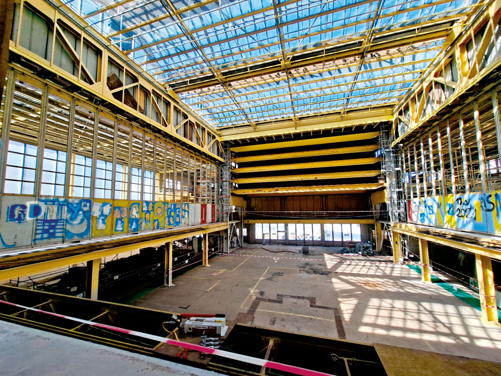 Mais revenons ร  lโ€™architecture industrielle et aux fameux planchers. Un moment spectaculaire a marquรฉ cette renaissance en juin 2025 : la mise en mouvement des planchers mobiles, jamais pleinement actionnรฉs jusquโ€™alors. Sept dโ€™entre eux ont รฉtรฉ hissรฉs jusquโ€™ร  15 mรจtres de haut dans lโ€™armoire ร  planchers, vรฉritable cathรฉdrale mรฉcanique. Objectif : rendre perceptible le gรฉnie du systรจme de mobilitรฉ verticale, sans nรฉcessairement remettre en usage son aspect transformable. Les planchers resteront finalement figรฉs, mais le projet conserve sa dimension pรฉdagogique et mรฉmorielle. Le transbordeur, les cรขbles, les contrepoids et les rails restent visibles. Le public pourra comprendre la logique dโ€™origine, sans les risques liรฉs ร  leur activation continue. Lโ€™objectif est dโ€™exprimer visuellement la structure, les trajets, la logique et le fonctionnement du systรจme de mobilitรฉ verticale dans lโ€™armoire ร  planchers. ร€ noter, le chantier est menรฉ avec des entreprises spรฉcialisรฉes de haut vol comme H. Chevalier (restauration du bรขti ancien) et Vulcain (mรฉtallurgie et serrurerie fine).